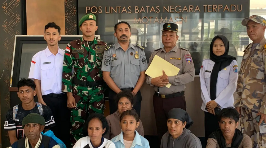 Pos Lintas Batas Negara (PLBN) Motamasin memfasilitasi pemulangan tujuh warga negara Indonesia (WNI) yang sempat diamankan otoritas Timor Leste karena masuk secara ilegal pada Rabu (16/7/2025) sekitar pukul 14.30 WITA. (Foto: BNPP RI)